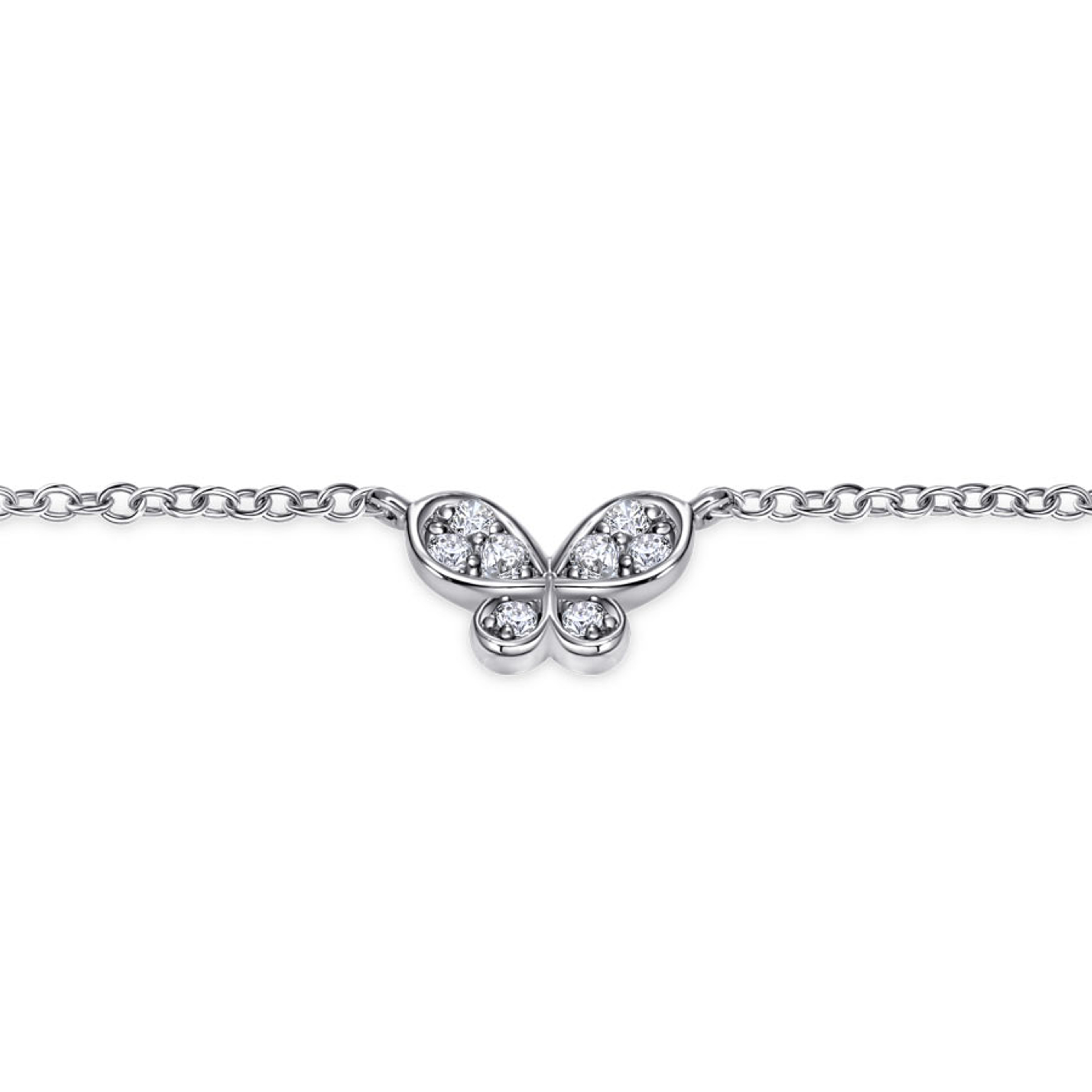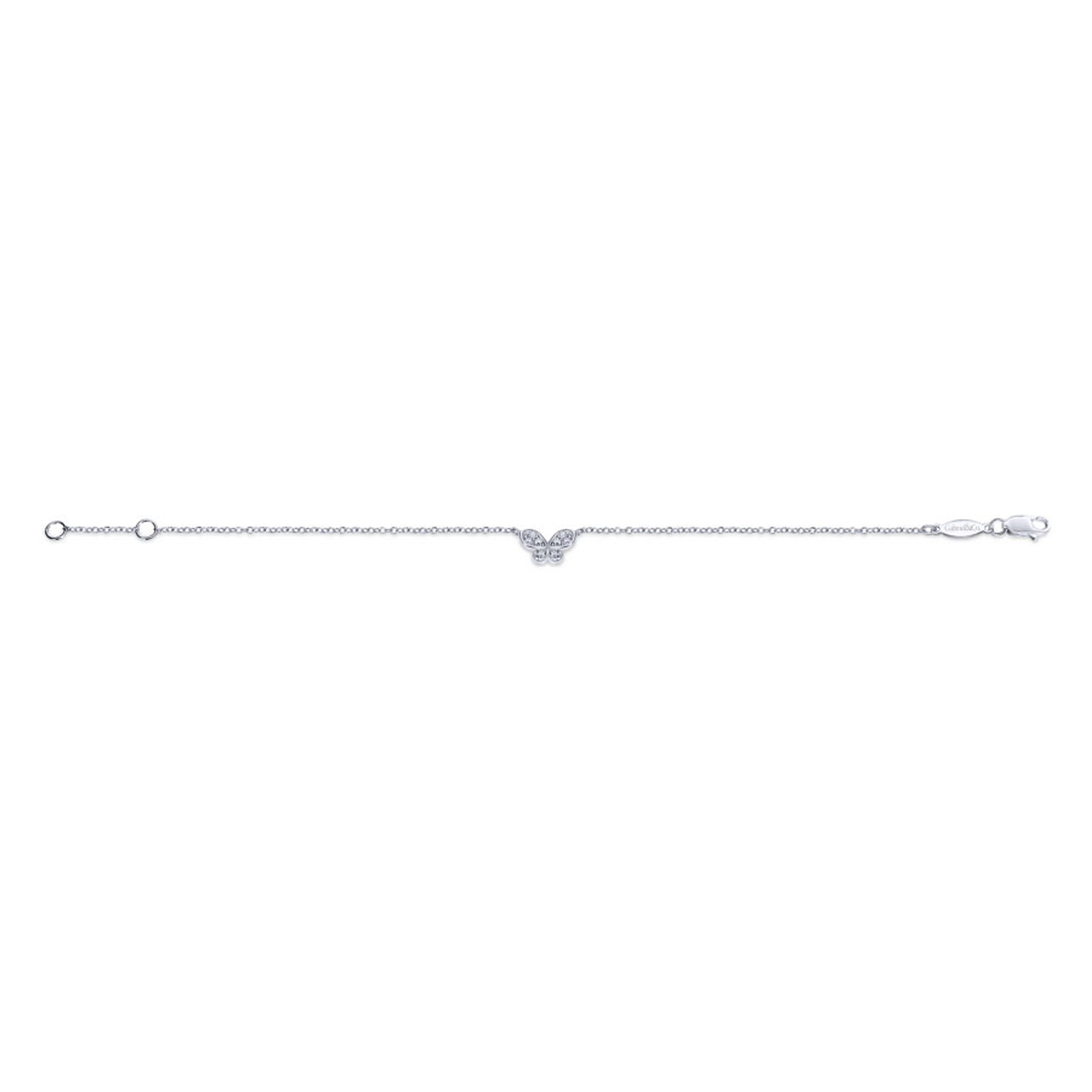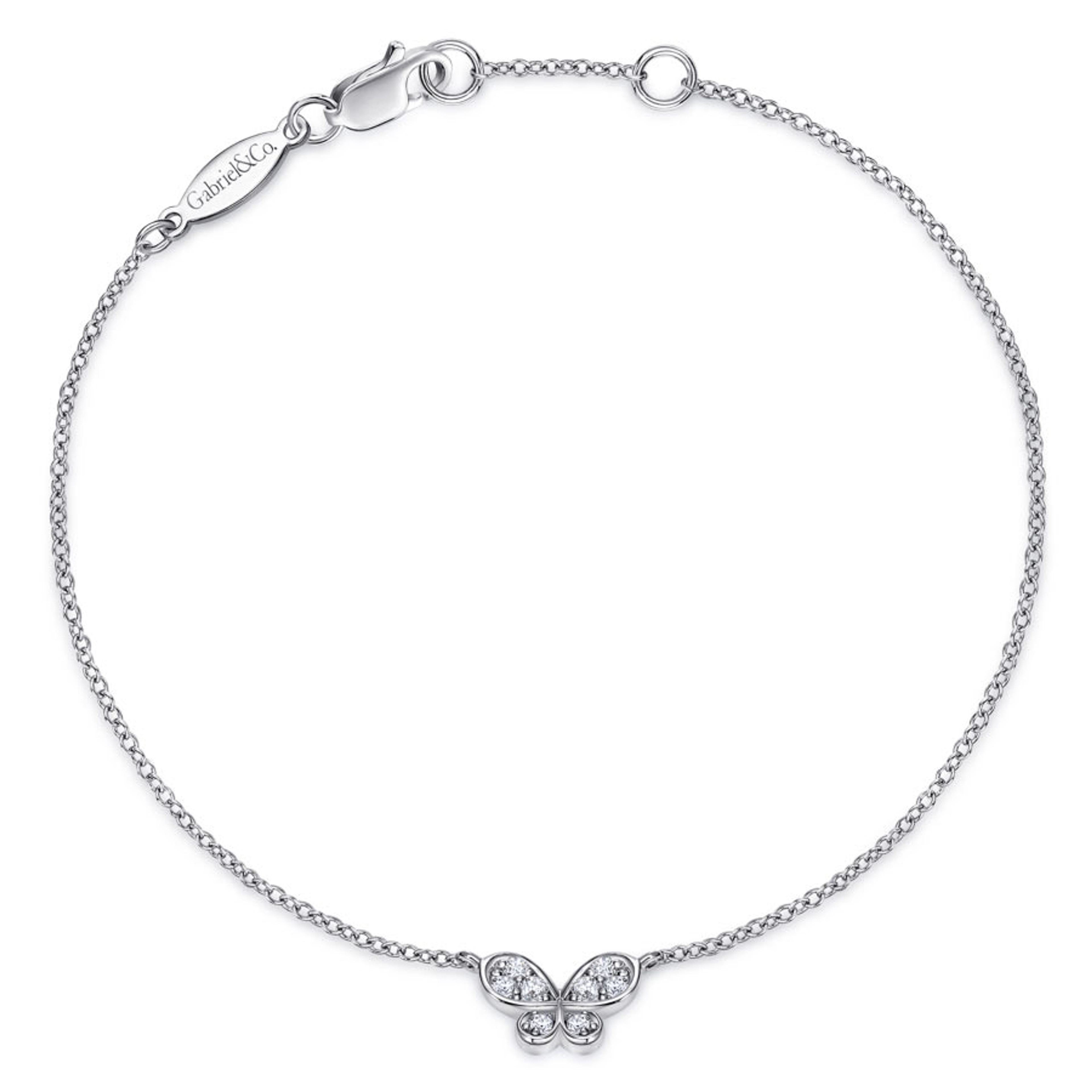 Style takes flight in this dainty white gold chain bracelet adorned with a shimmering pave diamond butterfly from Gabriel & Co.
