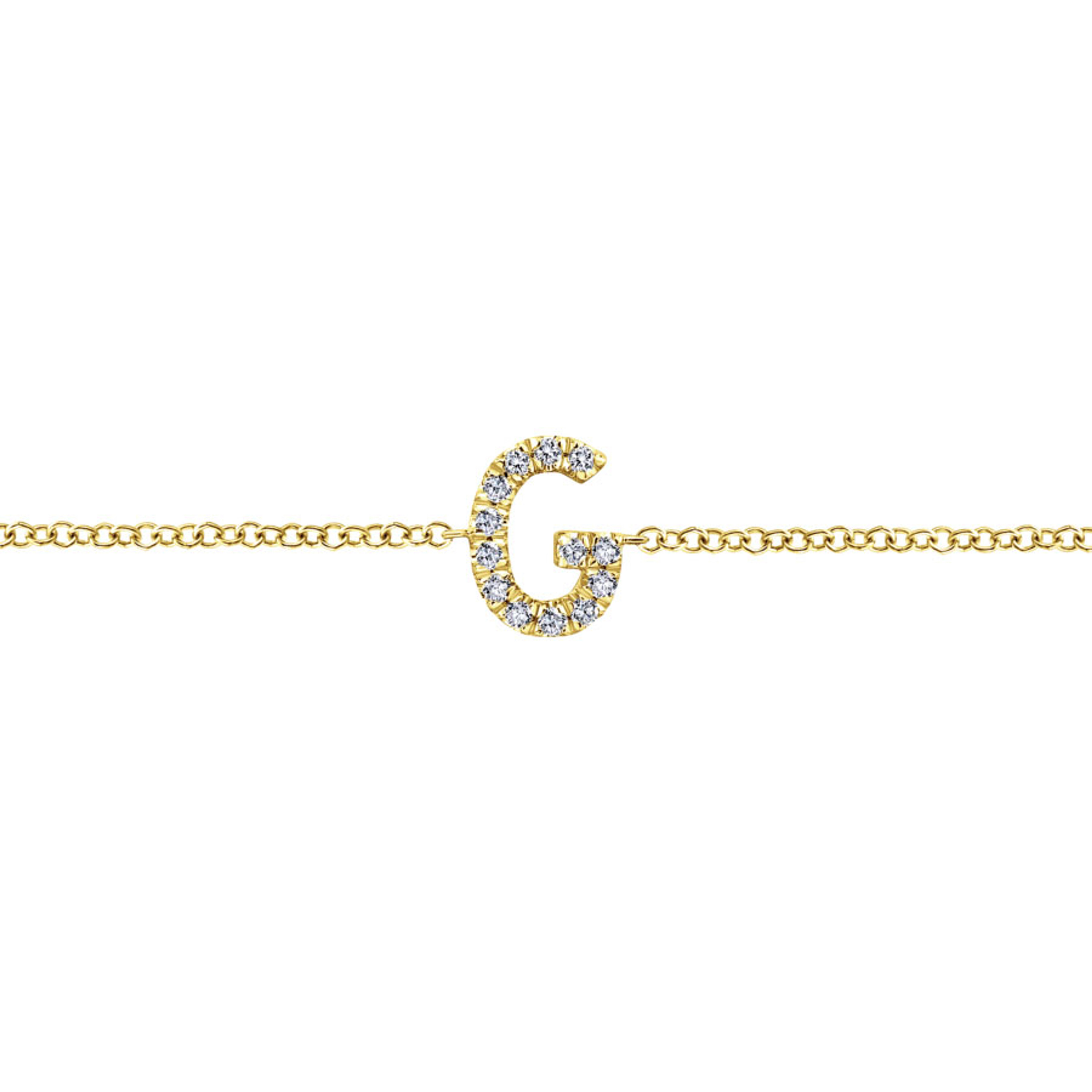Delicate 14K yellow gold chain bracelet accented with the letter of your choice in brilliant sparkling diamonds. This bracelet makes for a beautiful foundation piece for any jewelry collection.