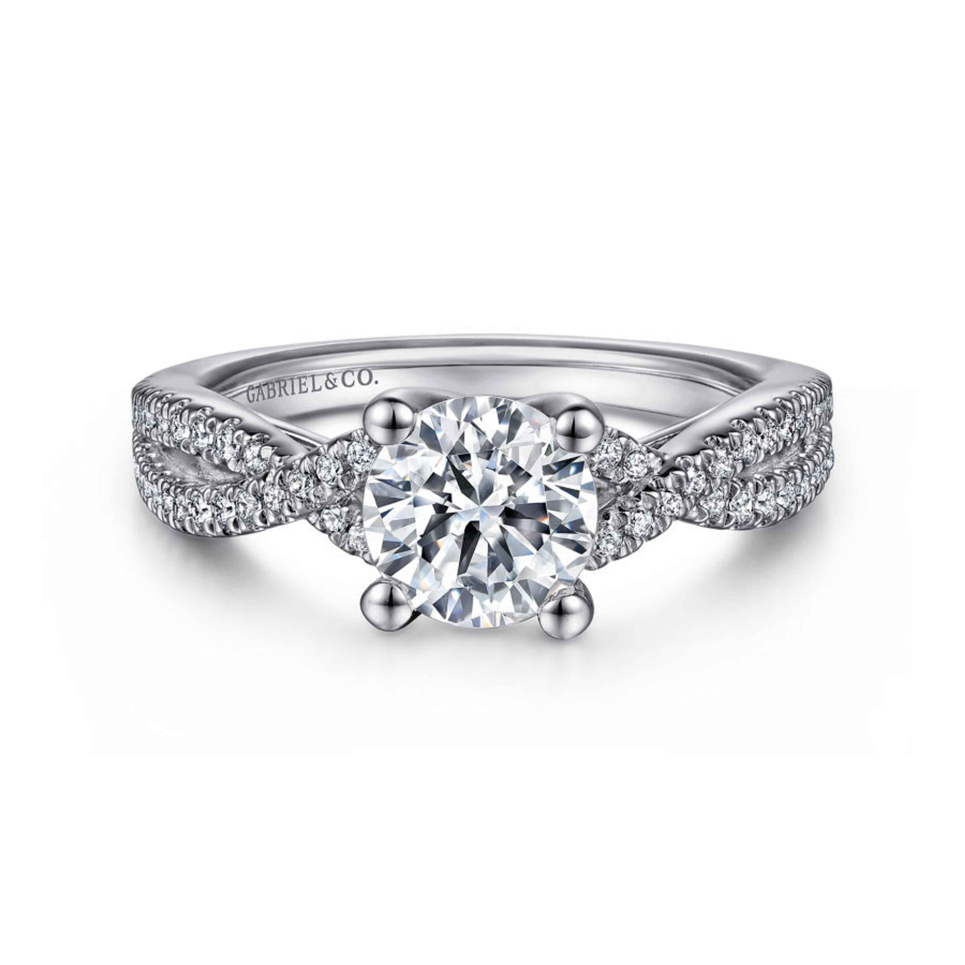 Delicate wisps criss-cross to highlight a sparkling center stone in this engagement ring setting. Setting only (center stone sold separately). Image shows a 1 carat round center stone. Click here to view video