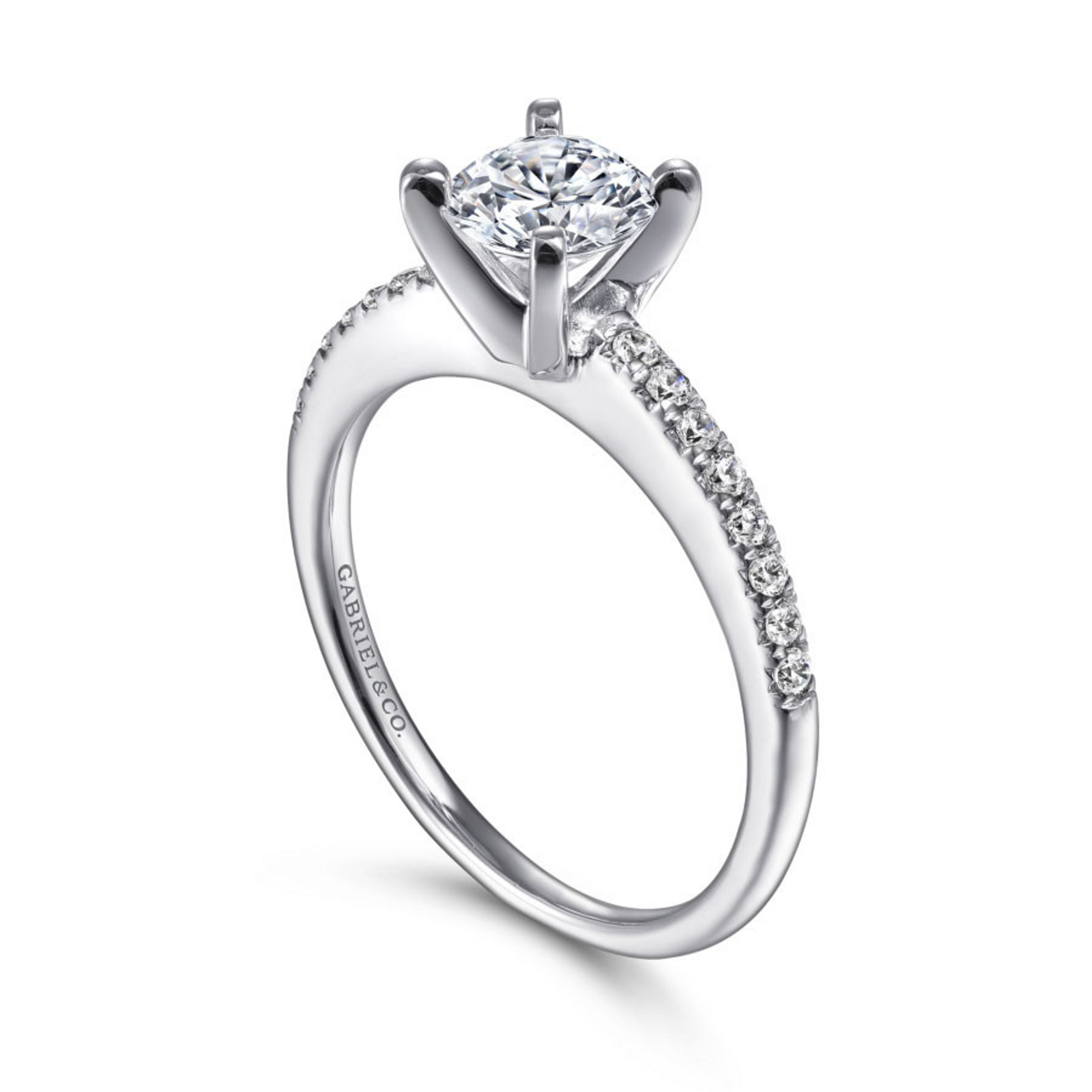 This flawless engagement ring setting crafted from luxe gold features a half diamond band a four prong solitaire setting. Setting only (center stone sold separately).