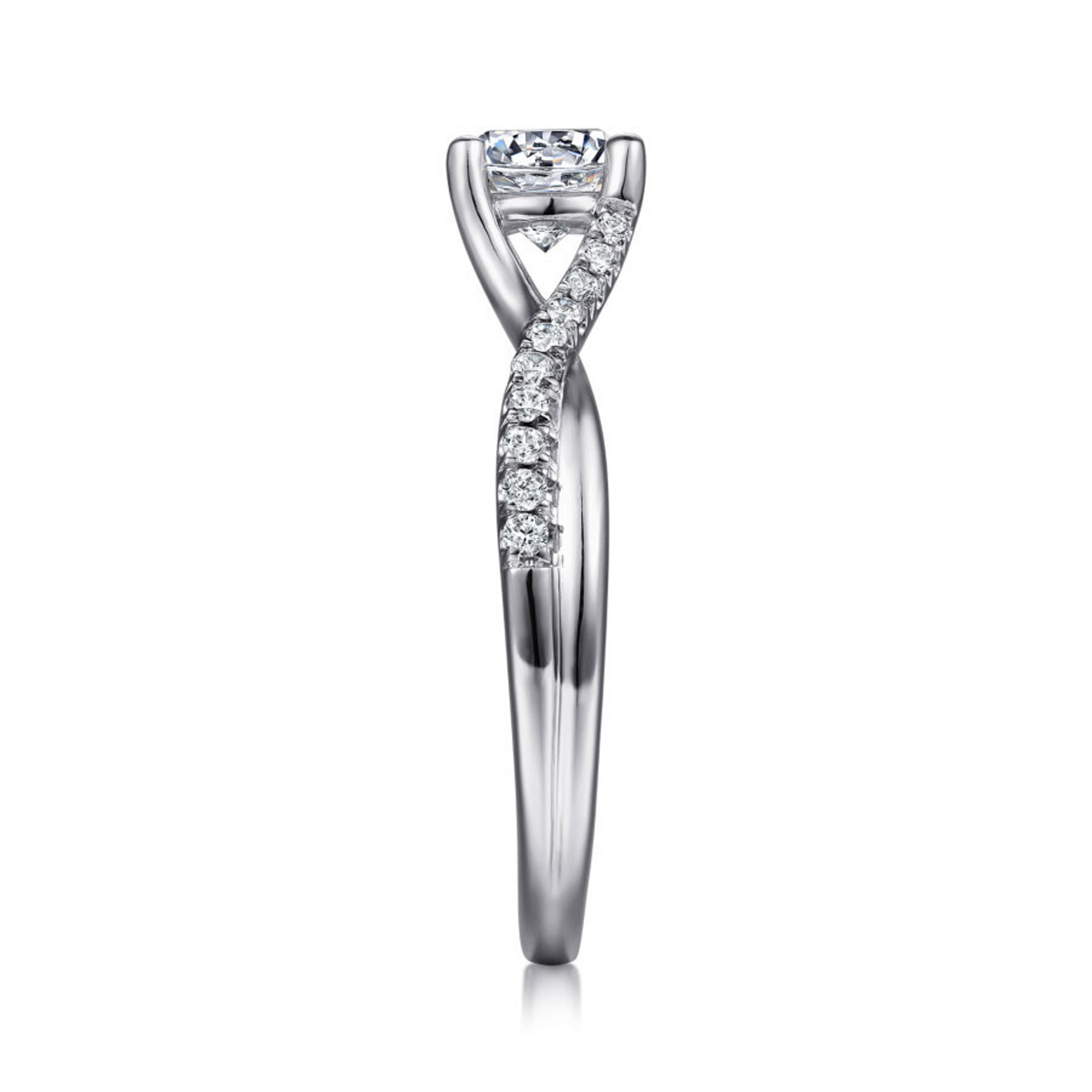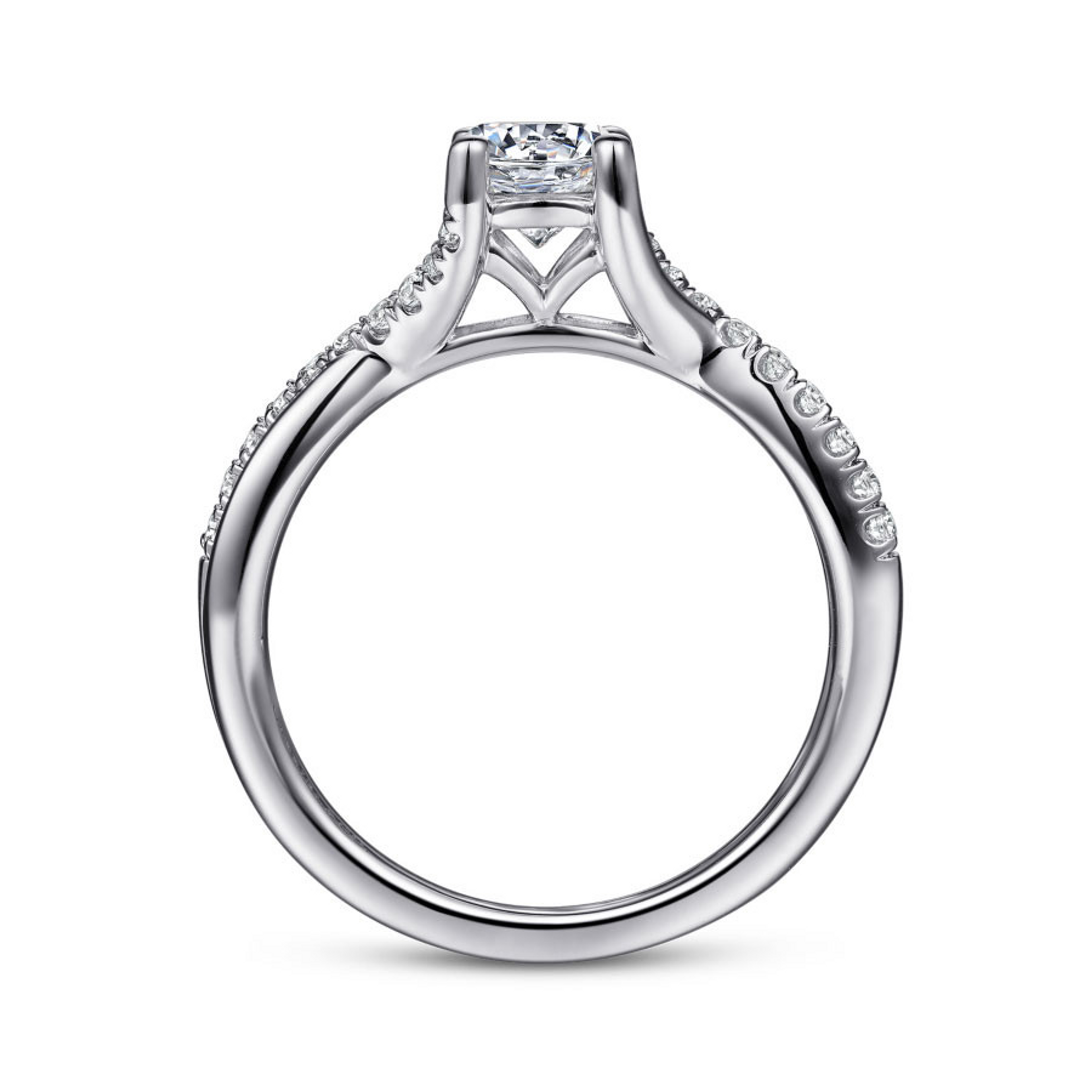 Decadent diamonds and polished precious metal intertwine gently to create this contemporary engagement ring setting. Setting only (center stone sold separately).