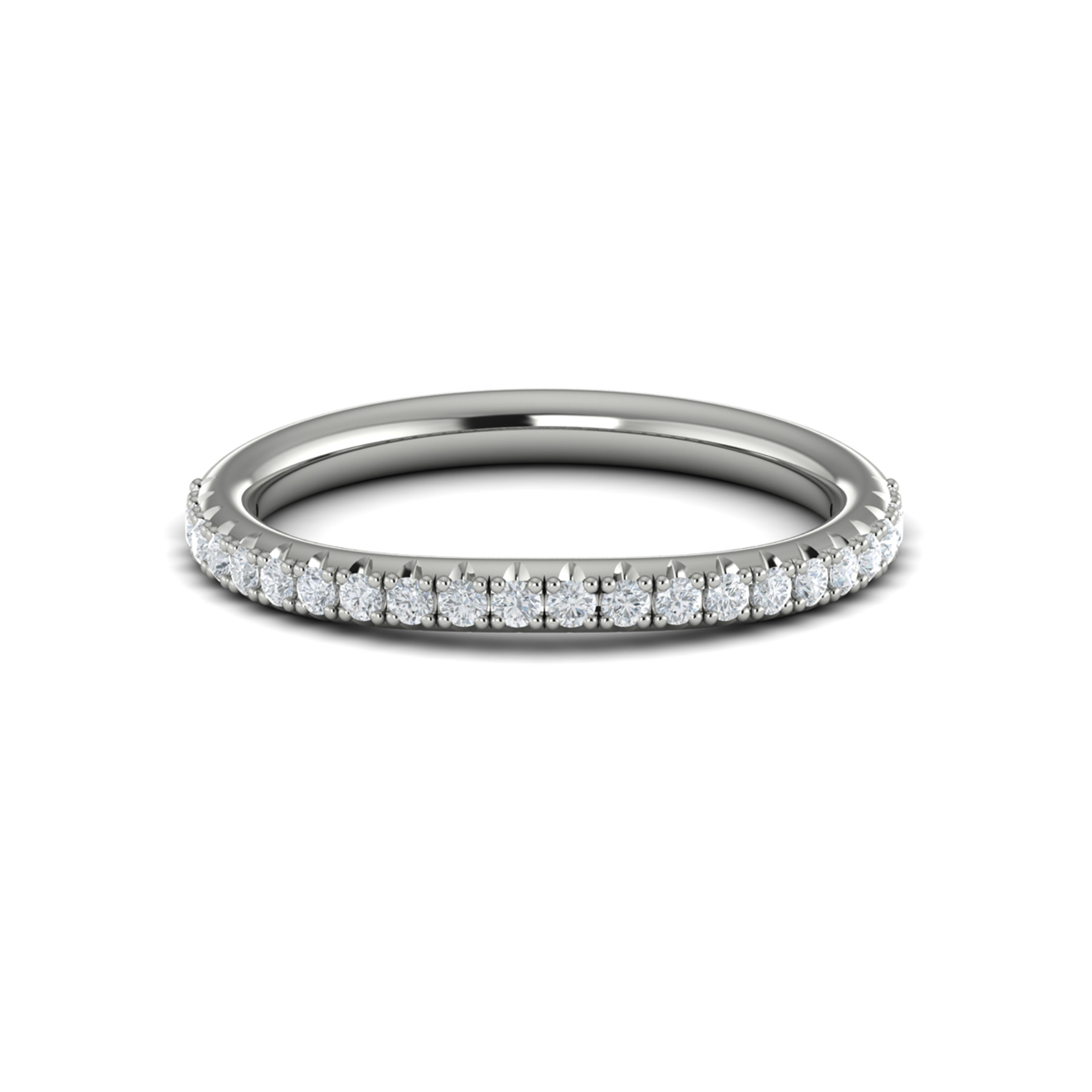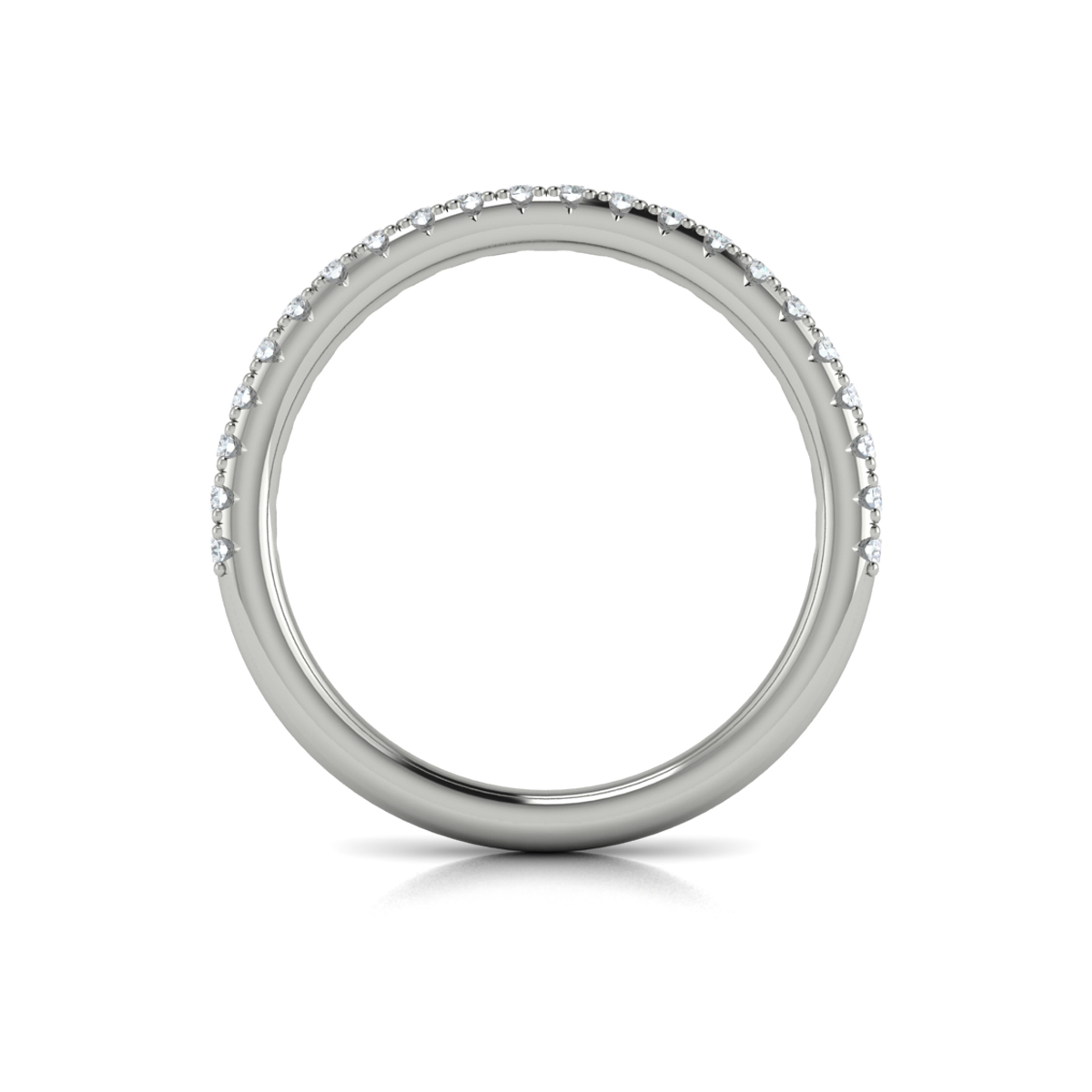 This one-of-a-kind masterpiece features a gentle curve that gracefully embraces your engagement ring, creating a harmonious and seamless look. Adorned with 1/3 total carat weight of radiant diamonds, each stone is meticulously set to enhance their natural sparkle.