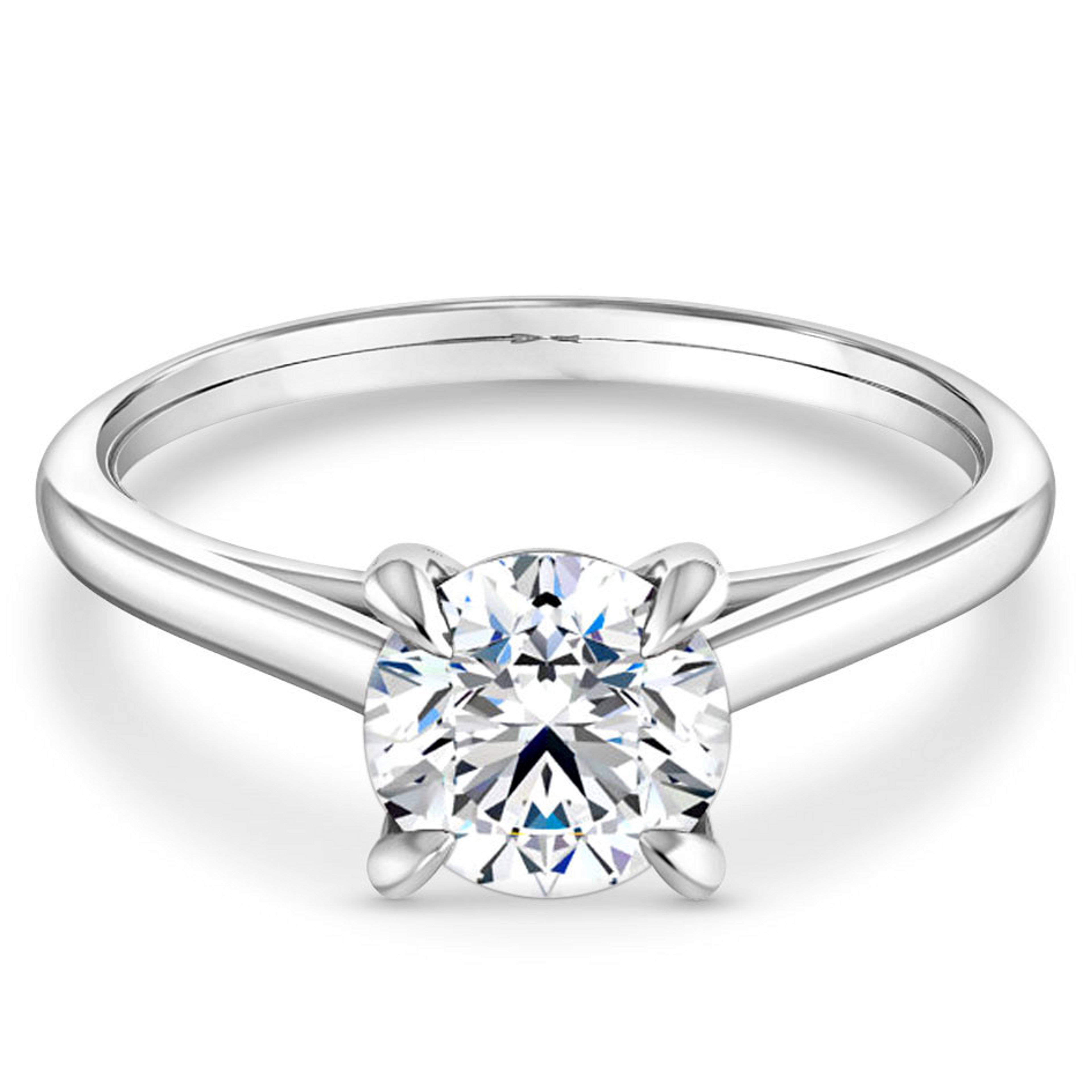 An elegant four prong setting securely cradles your center stone in this beautifully traditional setting. Setting only (center stone sold separately). Image shows a 1 carat round center stone. Click here to view video.