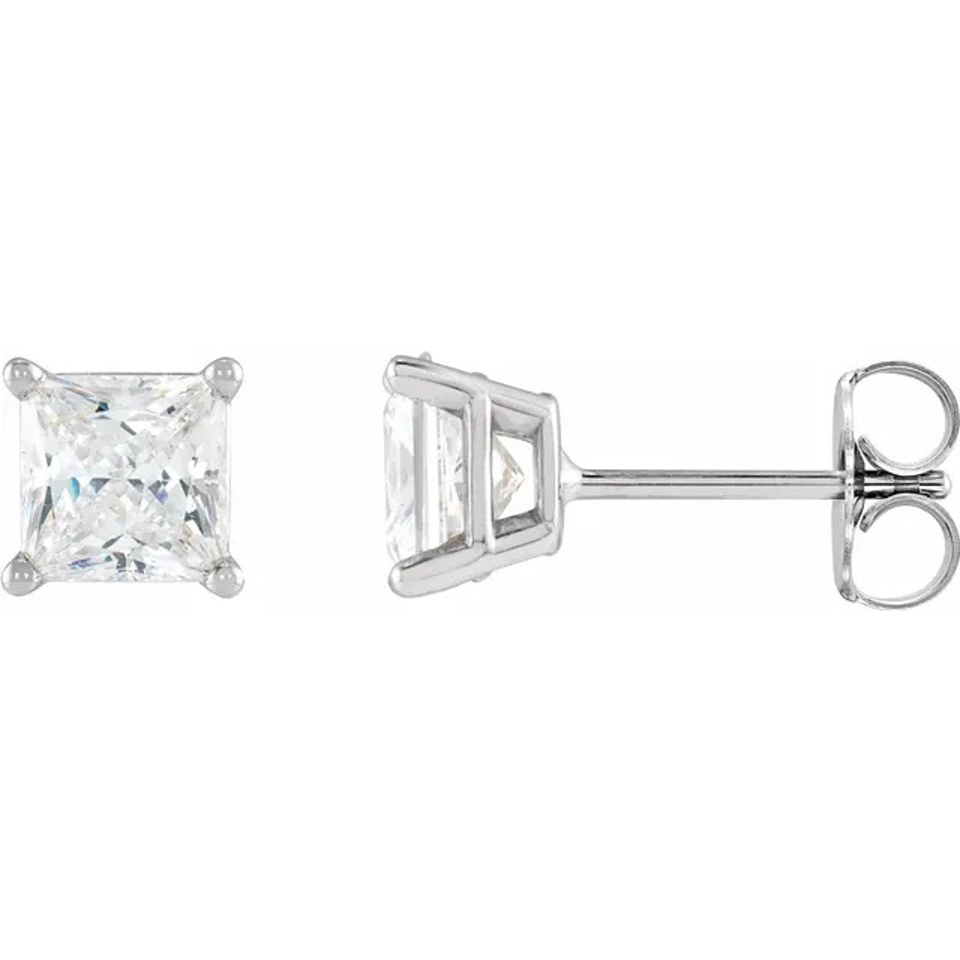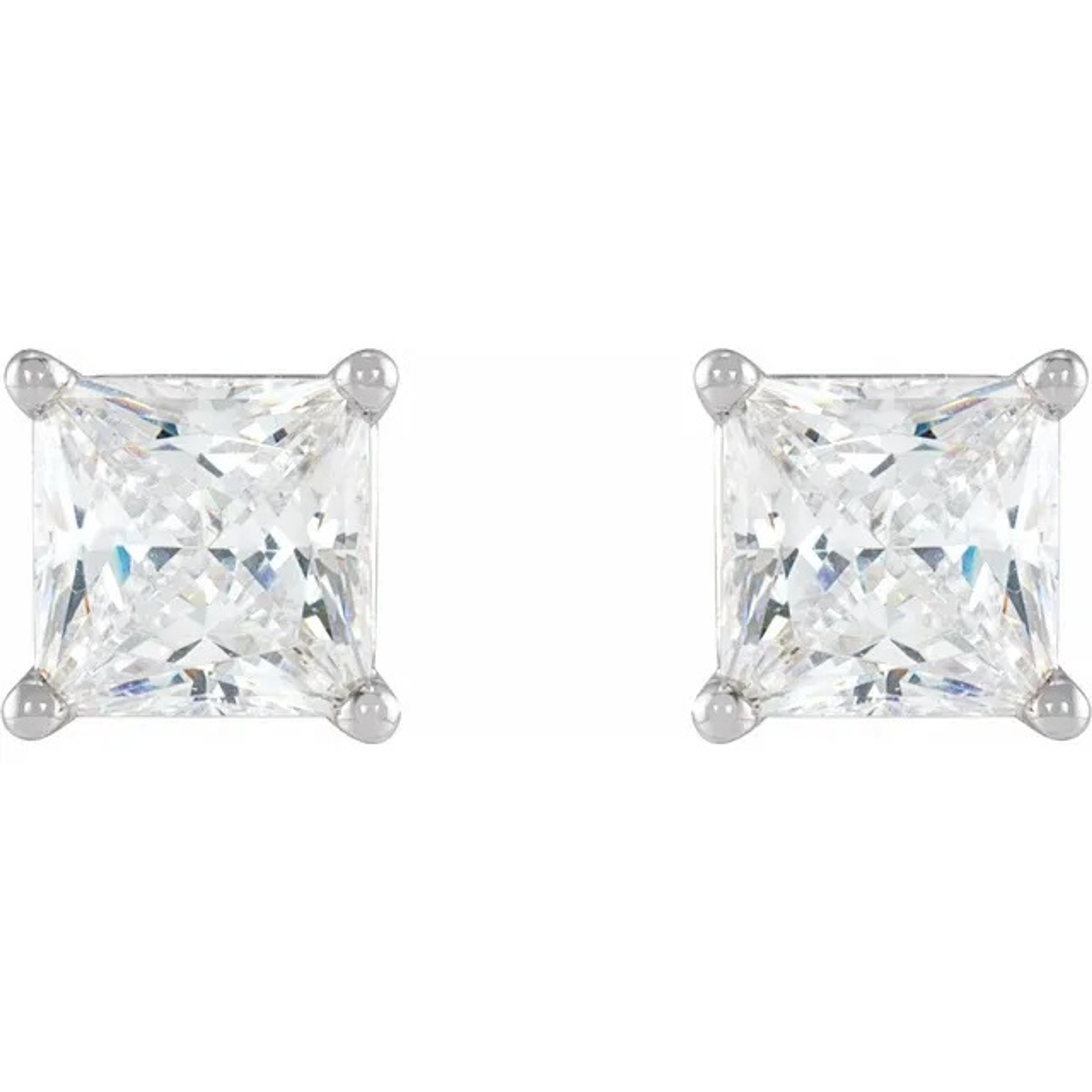 A beautiful pair of Moissanite studs set in martini style 4-prong settings with friction backs.