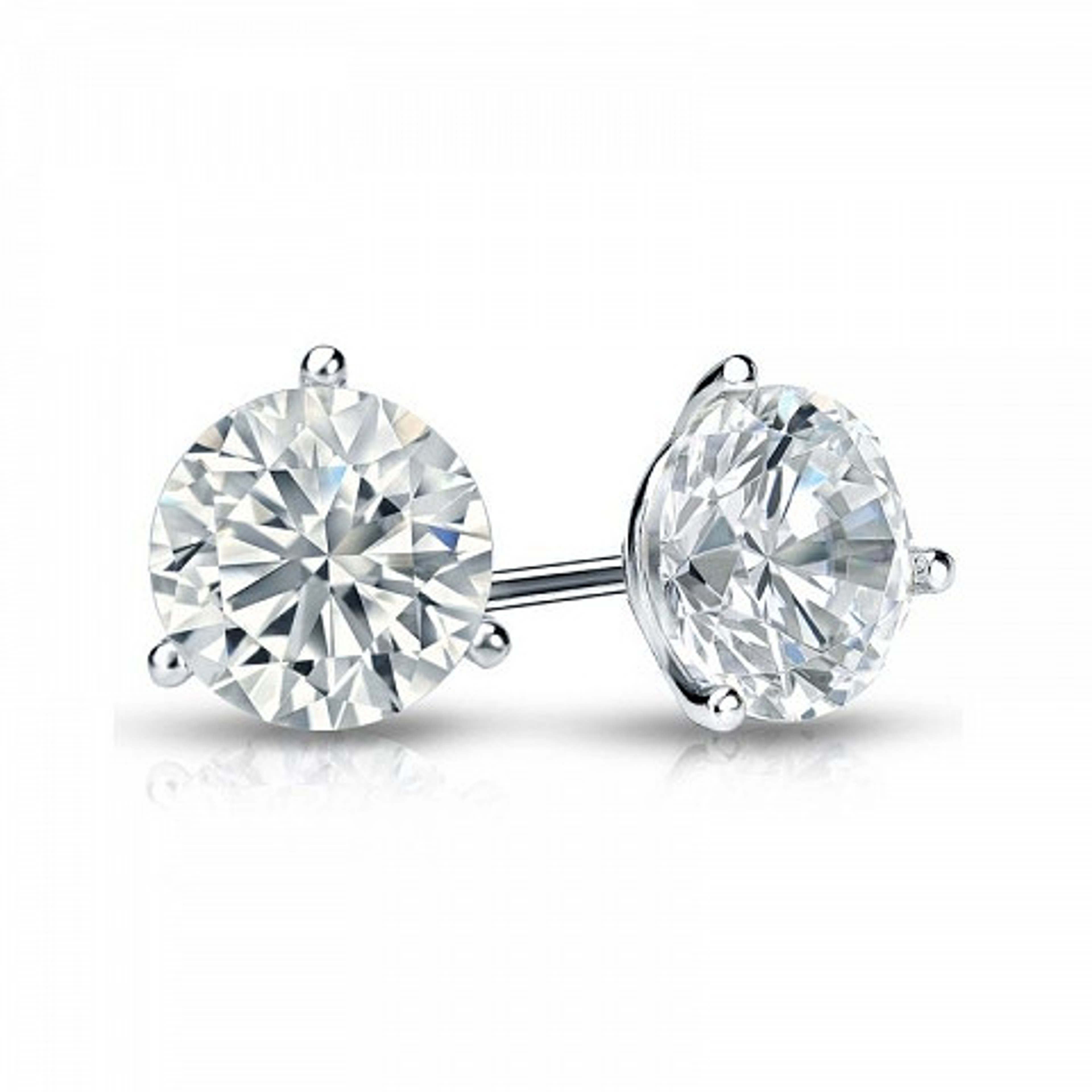 Choose from a variety of metals and total carat weights to create your customized timeless round natural diamond stud earrings set in three prong martini posts with friction backings.